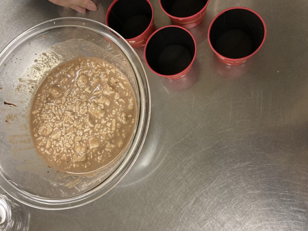 火と油と水を使用しないで、電子レンジや工夫をして野菜たっぷりカレーとチョコレートムースを作成しました。